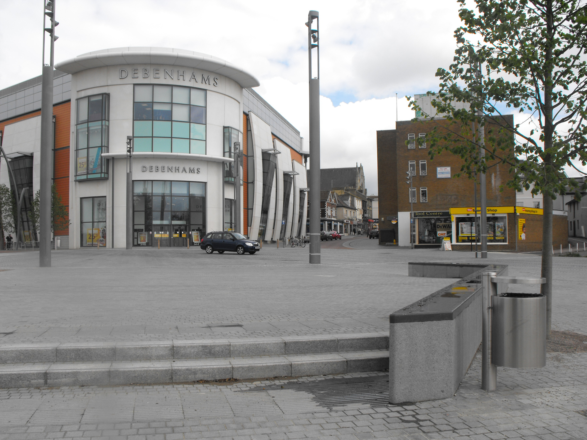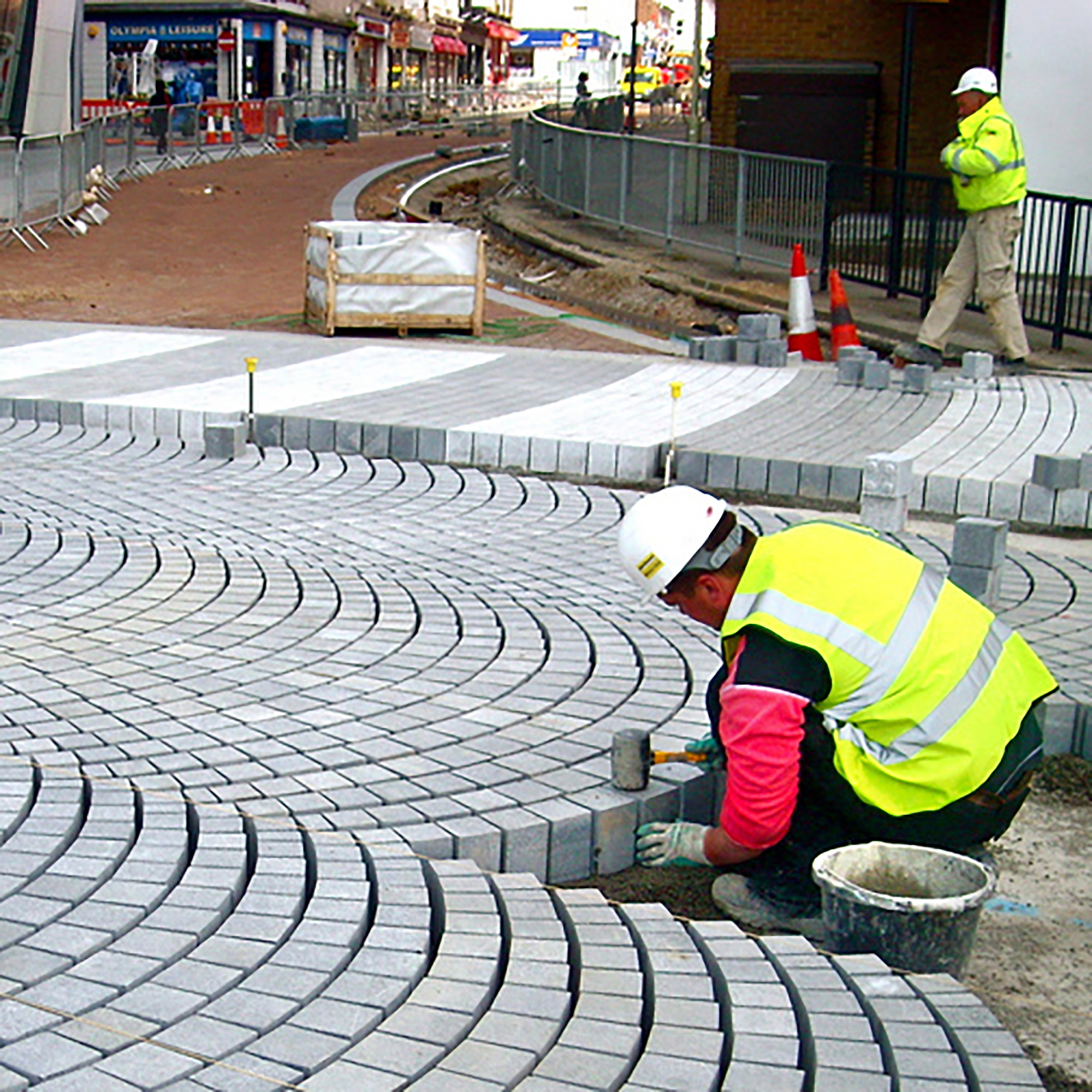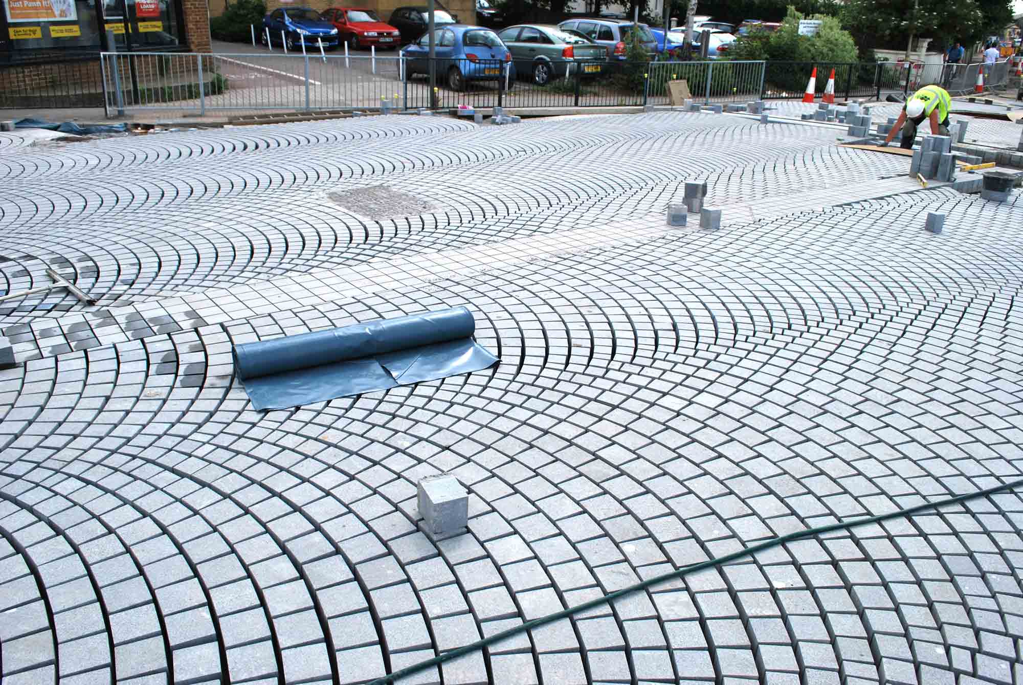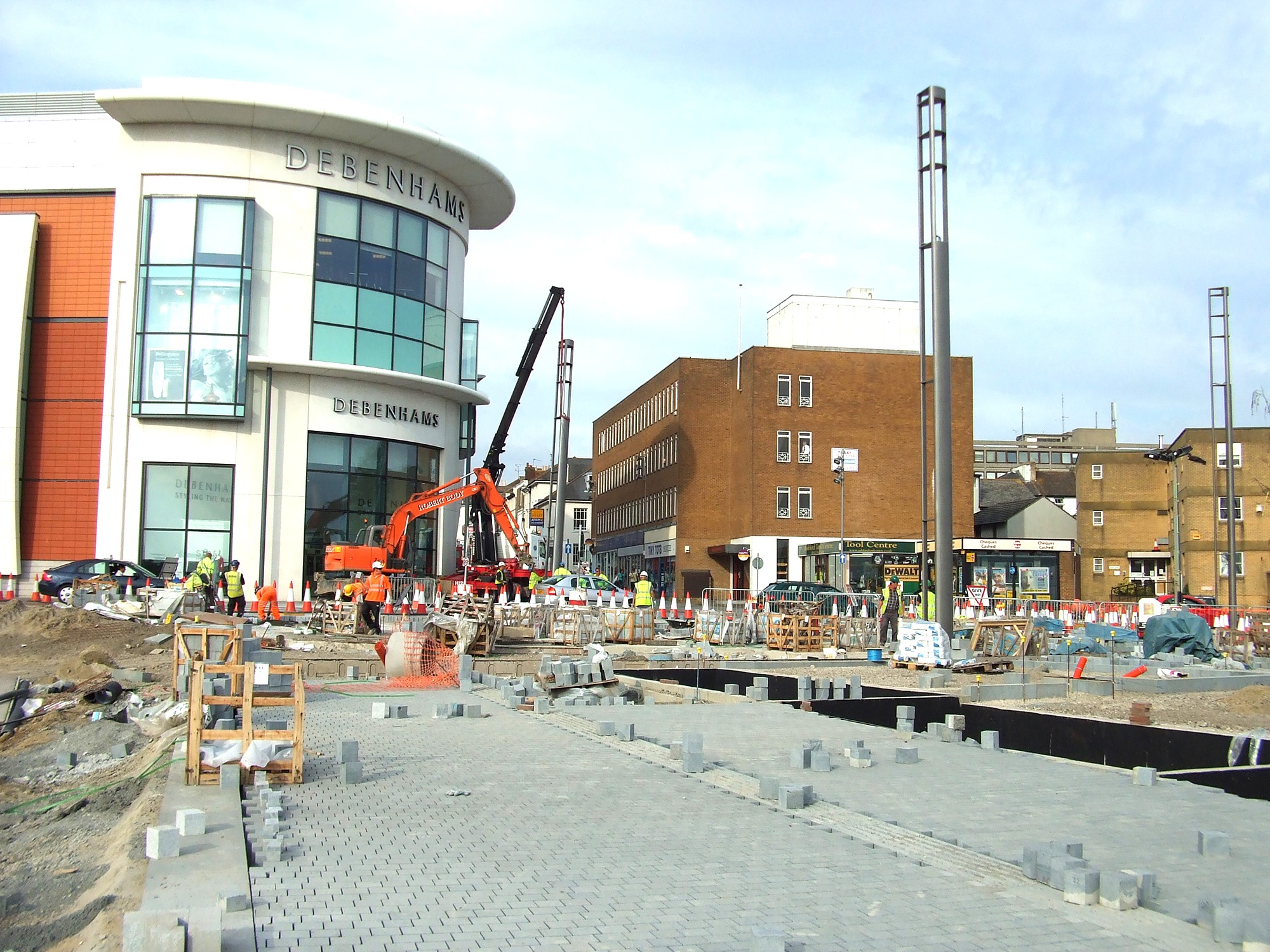 Works included the installation of paving, drainage, street furniture and ducting. An existing roundabout was converted to a traffic controlled junction and street lighting and kerbing also installed.