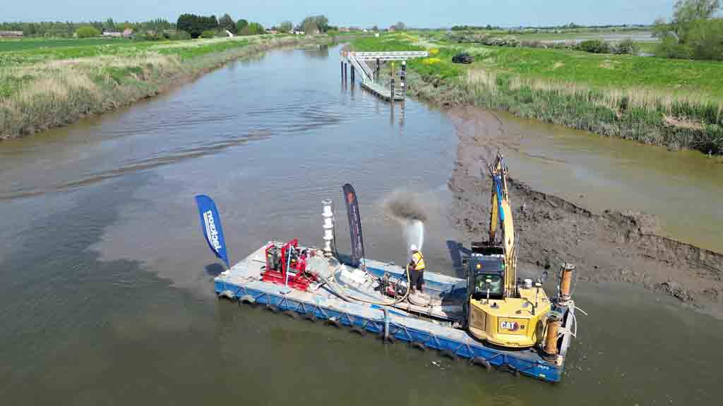 Silt-busting at Denver Sluice in Norfolk.