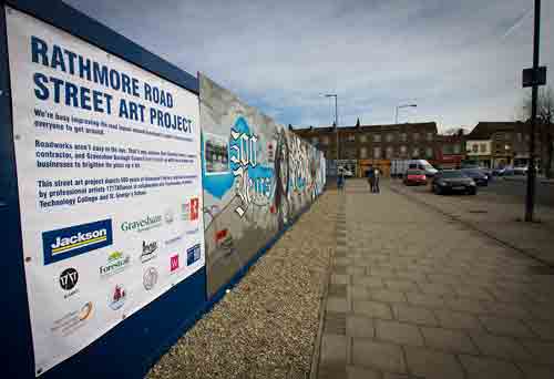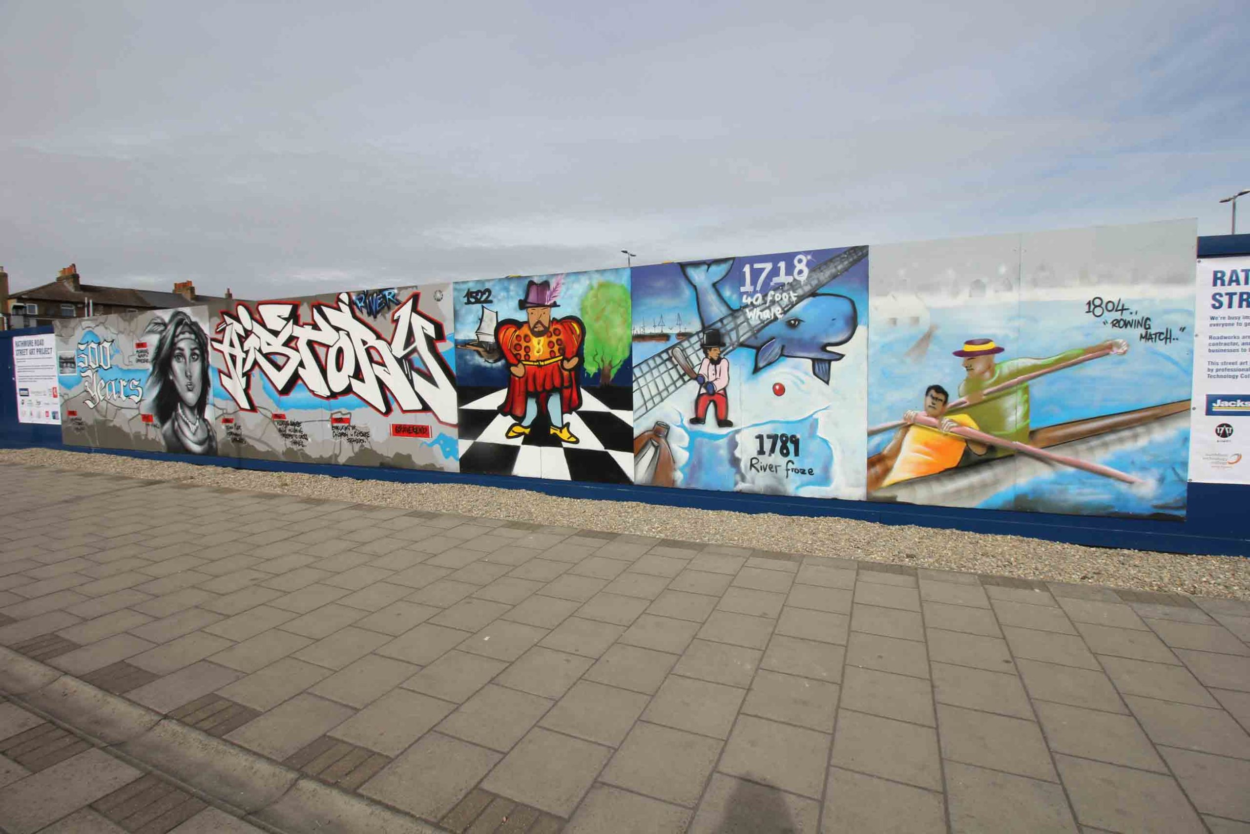 During the project, Jackson and Gravesham Borough Council (GBC) teamed up with local schools and businesses to brighten up the area around the site compound by undertaking a street art project depicting 500 years of Gravesend’s history.