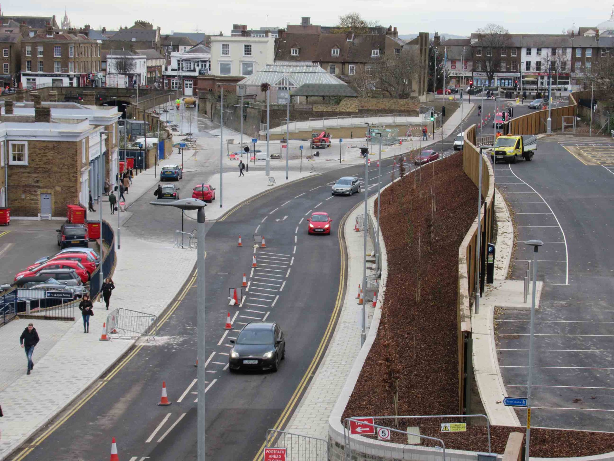 The works were conducted in phases to minimise disruption with the first phase focusing around Gravesend station. The existing one-way road was re-aligned and widened to form a two-way road and new junctions were constructed.