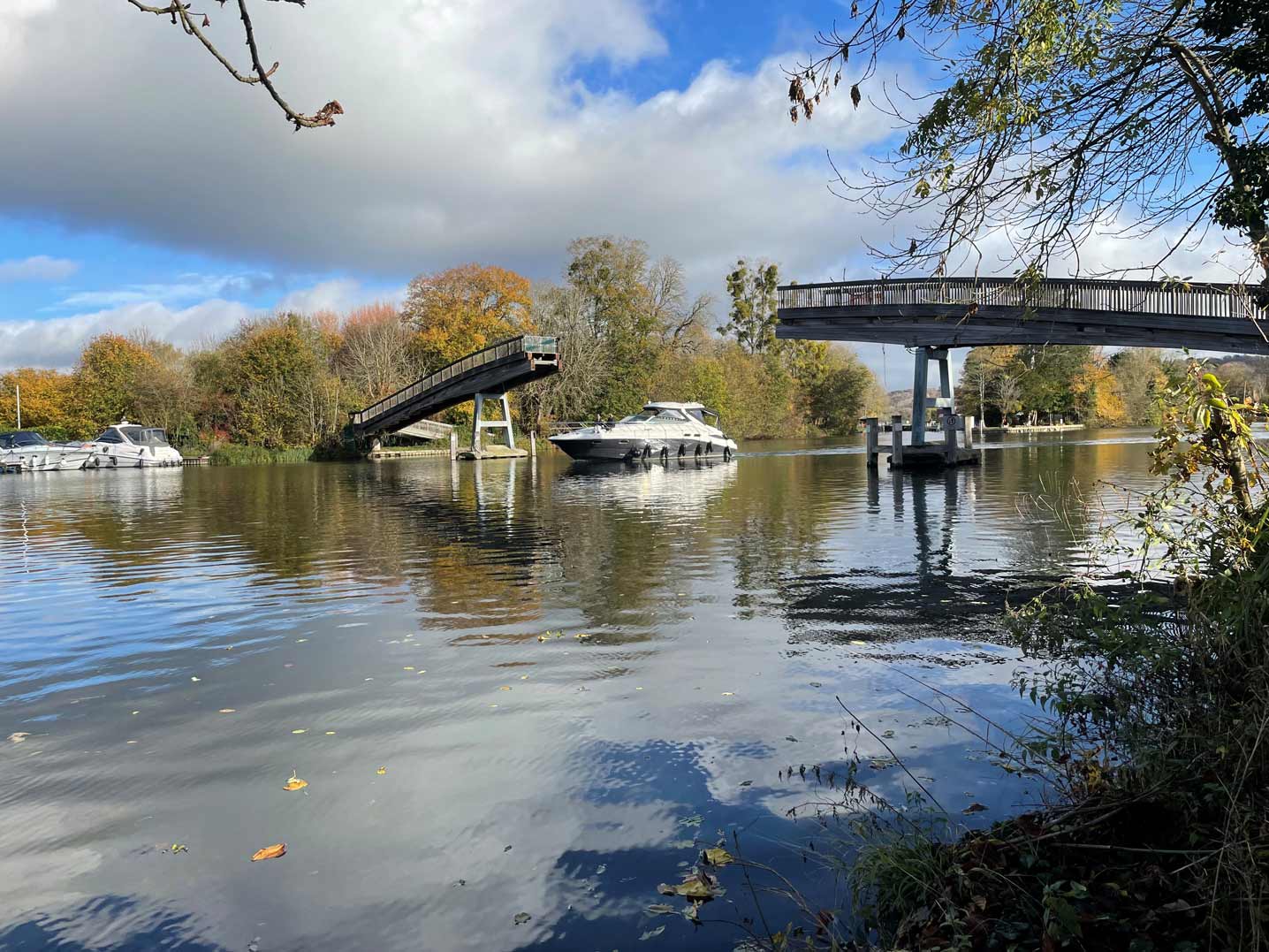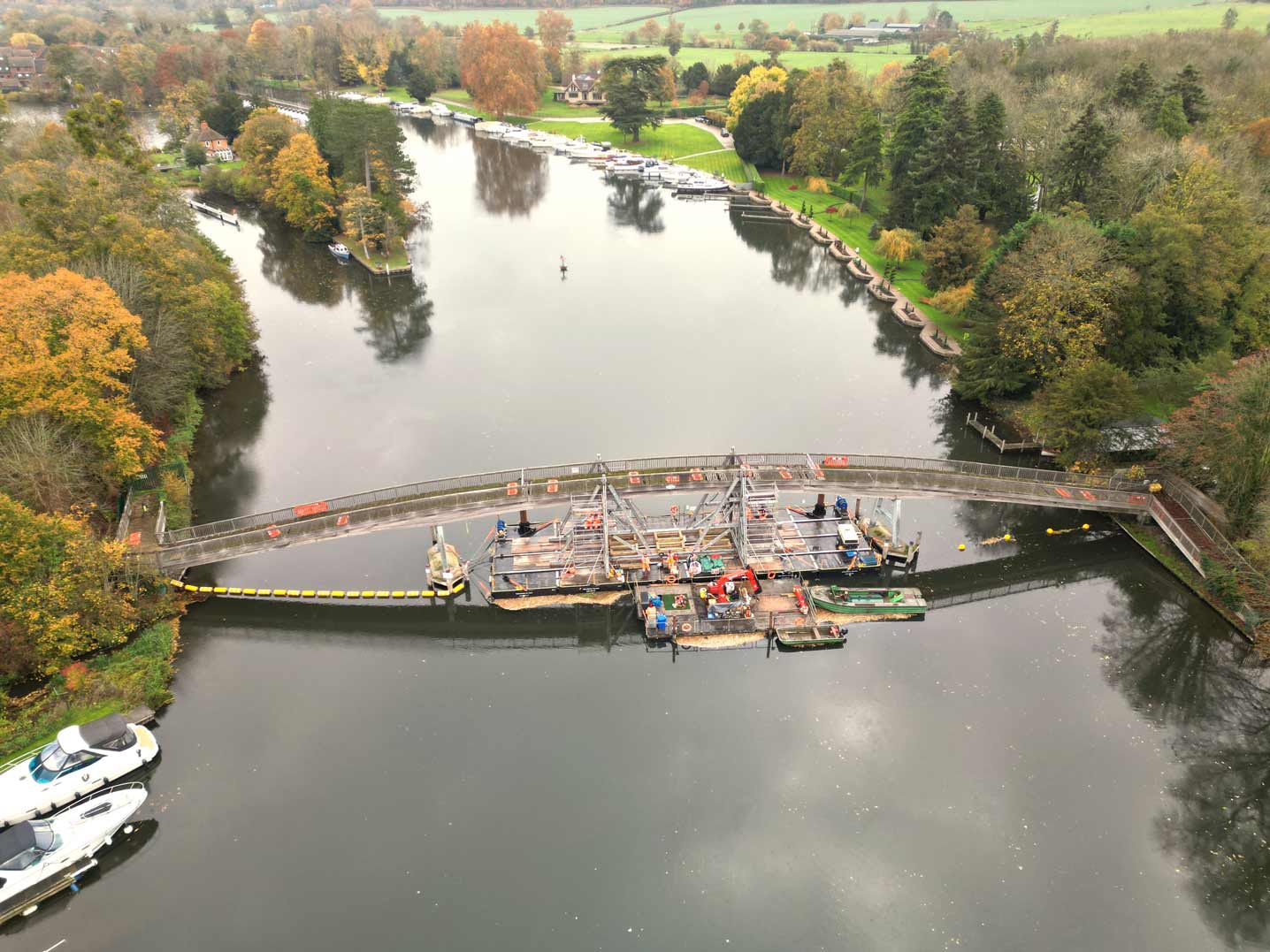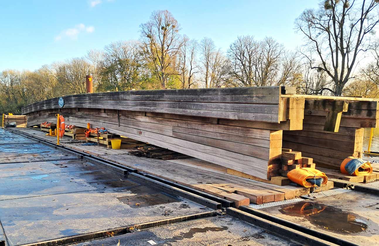 At 46m, it is the longest hardwood bridge in Britain. The centre of the bridge gives a height of 6.51 metres (21.4 ft) above the water, allowing the passage of a range of vessels.